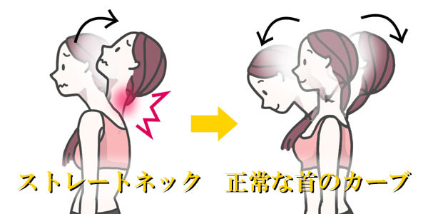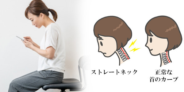 猫背などにより頭が重心線より前に出ている姿勢では、首の弯曲が少なくなる「ストレートネック」になってしまします。