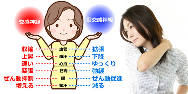 首に痛みがあったり、動きが悪かったりすると、副交感神経の機能が低下して、身体はリラックスできずに、筋肉が緊張したり、血液の流れが悪くなったりして、さらに痛みを起してしまうという悪循環に陥ってしまいます。