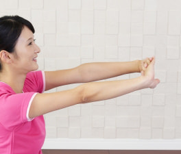 腕やそれに関係する胸部などをストレッチする事で、筋膜リリース法をご指導します。