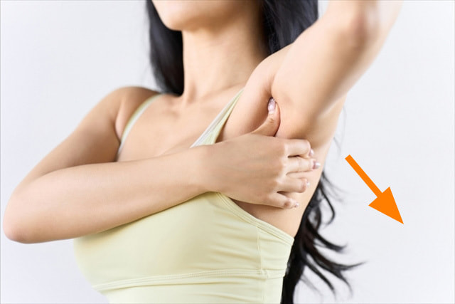 親指を脇の下に押し込んでから、背中側に押し込むように脇の下のお肉をつかんで外に引っ張っていきます。