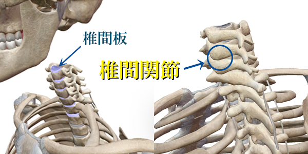 首には7つの頚椎があり、その頚椎と頸椎を連結するものは、椎間板と椎間関節で構成されています。