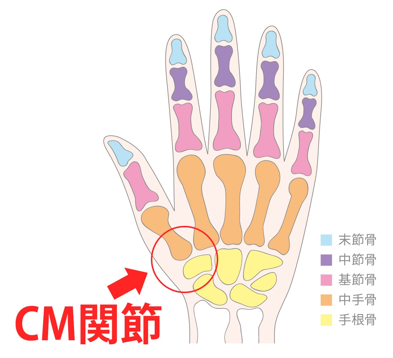 親指の付け根にある関節をCM関節といいます。